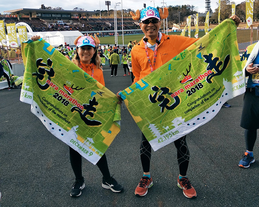 說到如何開始規律的跑馬,顏世坤也不禁坦承:「一個人跑又沒有目標,的確很容易覺得很累就放棄了。」但在維持跑步習慣兩三年之後,以往冬天易受風寒感冒的體質,出現了明顯的改善,身體也日漸強壯,而這些改善顏世坤的太太也看在眼裡,逐漸從加油團轉為跟著先生一起跑,如今賢伉儷兩人也攜手跑了逾 30 場全馬,「很有優越感啊!只有我太太陪我一起跑,其他人的太太頂多當加油團!」提到自己很幸運有位陪他一起跑全馬的老婆,顏世坤充滿感激卻又忍不住炫耀地與我們分享,「家人一定都希望對方健康,拉老婆一起來運動,她就也不覺得我都只花時間在跑步上面,家人互相支持才可以更長久維持習慣!」