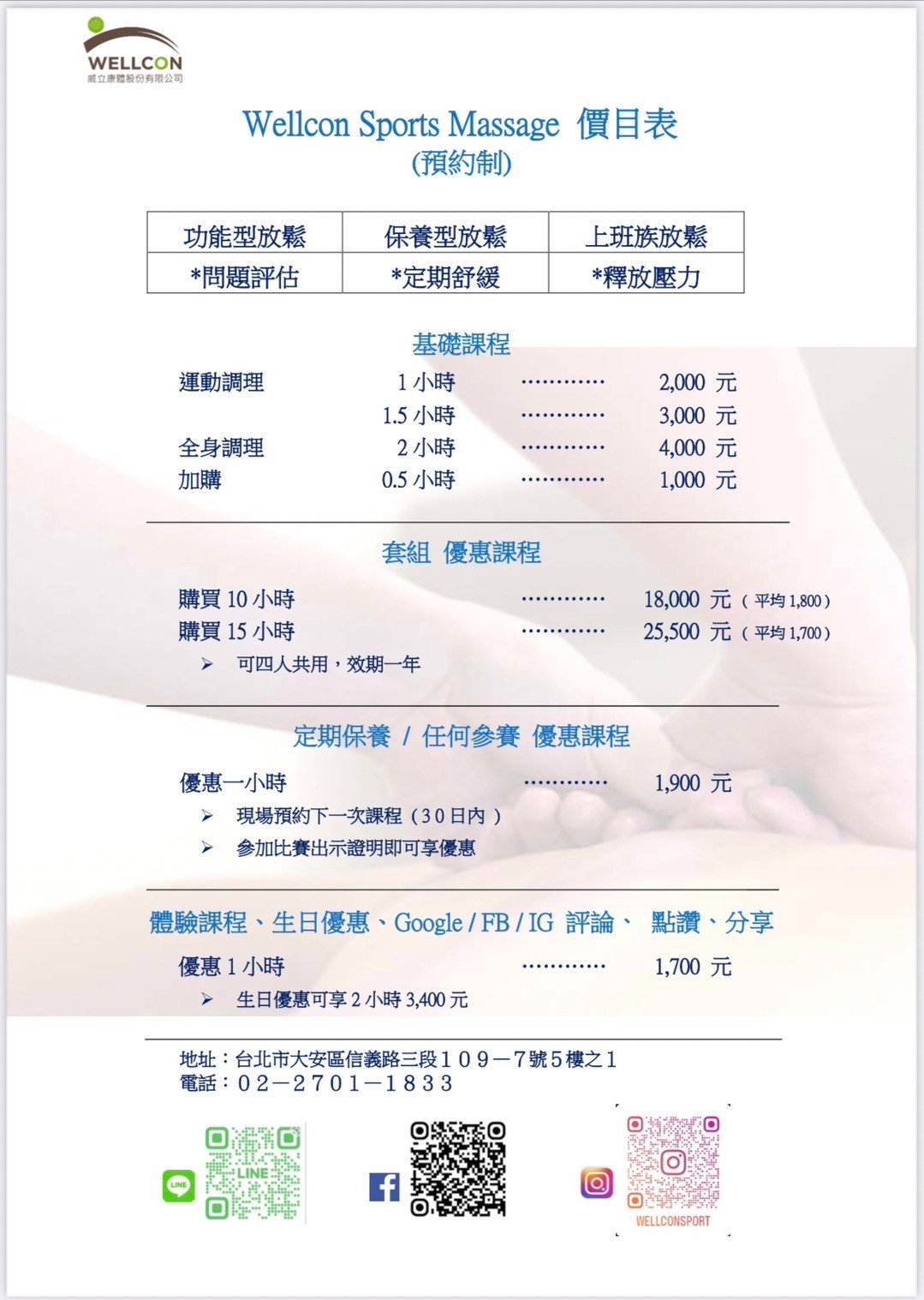 按摩項目與收費